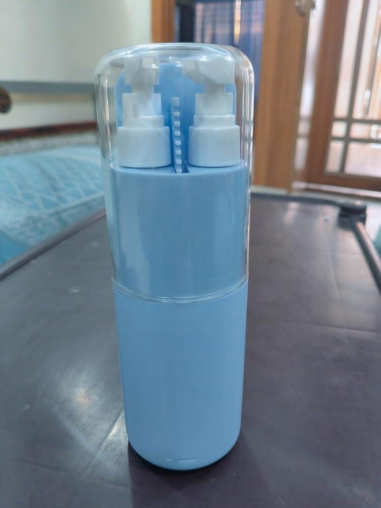 This travel organiser is a real game-changer, keeping all your toiletries neatly in one place. Its compartments are leak-proof design make it perfect for hassle-free trips. The dual pump system offers easy dispensing, and the stylish coral pink finish adds an elegant touch.